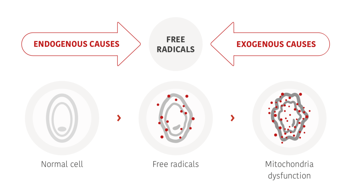 Human skin, our body’s outermost protective barrier, is constantly exposed to an environment that promotes oxidation. wSunlight with its invasive UV and visual rays is particularly stressful for the skin. In the short term, light-induced oxidative stress leads to skin damage in the form of redness (erythema) and infl ammation. In the long term, accelerated ageing processes and serious consequences for the health of our skin, including skin cancer, are the result. Whenever our skin is exposed to intense photoradiation, changes occur in certain molecules within the body leading to the formation of various highly reactive oxygen species (ROS) and free radicals which cause oxidative stress (Figure 1) (1).